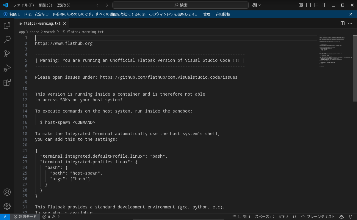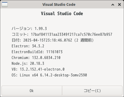 1. 概要 開発環境として、「Visual Studio Code」を使用します。 2. インストール 「gnome-software」で、「Visual Studio Code」を検索して、インストールします。 3. 起動 「スタート」→「開発」→「Visual Studio Code」