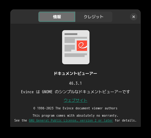1. 概要 ドキュメントビューアとして、「Evince」を使用します。 「Evince」は、デフォルトでインストールされています。 2. 起動 「スタート」→「ド」→「ドキュメントビューア」 (名前を名乗らないよね)