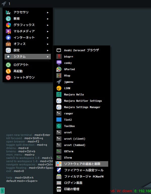 1. 概要 「Pamac」は、パッケージ管理フロントエンドプログラムです。 操作等については、「Linux - 共通事項 - パッケージ管理フロントエンド」をご参照ください。 2. 起動 「スタート」→「システム」→「ソフトウエアの追加と削除」