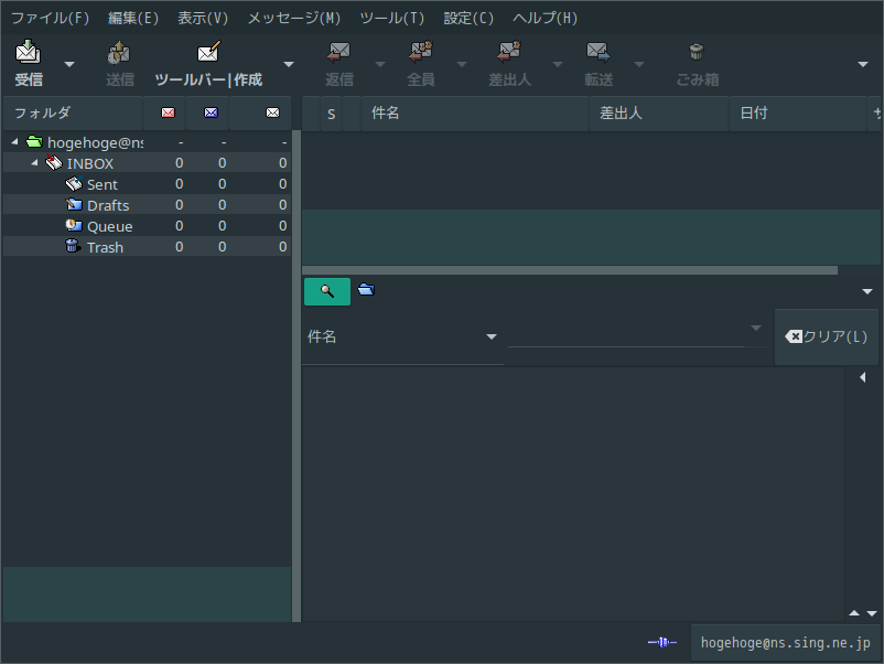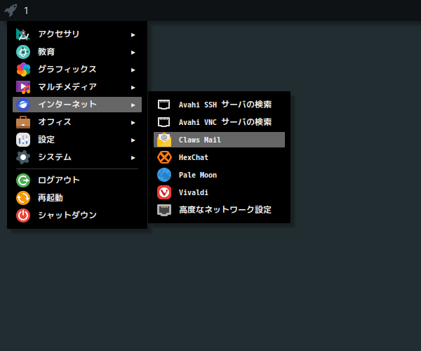 1. 概要 メールクライアントは、デフォルトでは何もインストールされていません。 「Claws Mail」をインストールして使用します。 「設定ウィザード」や基本的な操作に関しては、「メールクライアント - Claws Mail」をご参照ください。 2. インストール 「root」ユーザ権限で。 yes | pacman -S claws-mail 3. 起動 「スタート」→「インターネット」→「Claws Mail」