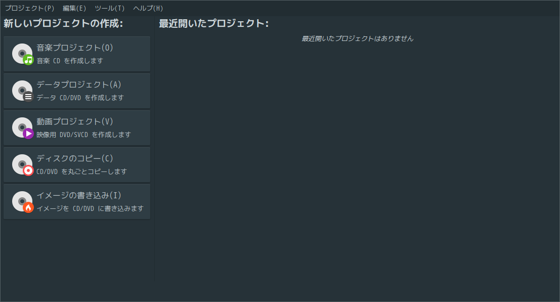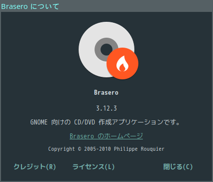 1. 概要 光ディスクのライティングソフトとして、「Brasero」を使用します。 2. インストール 「root」ユーザ権限で。 yes | pacman -S brasero 3. 起動 「スタート」→「マルチメディア」→「Brasero」