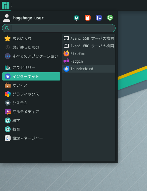「Manjaro 24.2 XFCE」-「スタート」→「インターネット」→「Thunderbird」