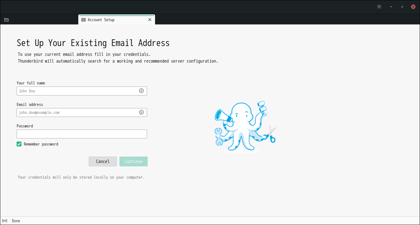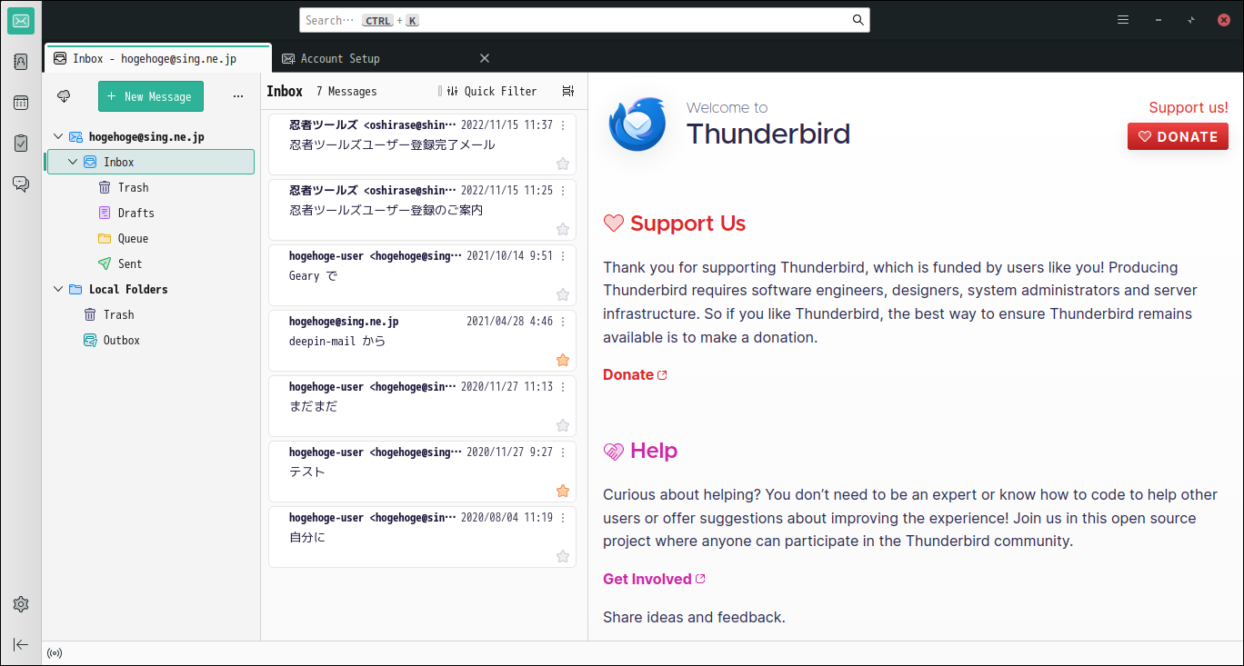 「Manjaro 24.2 XFCE」-「Thunderbird」「メールアカウント設定」