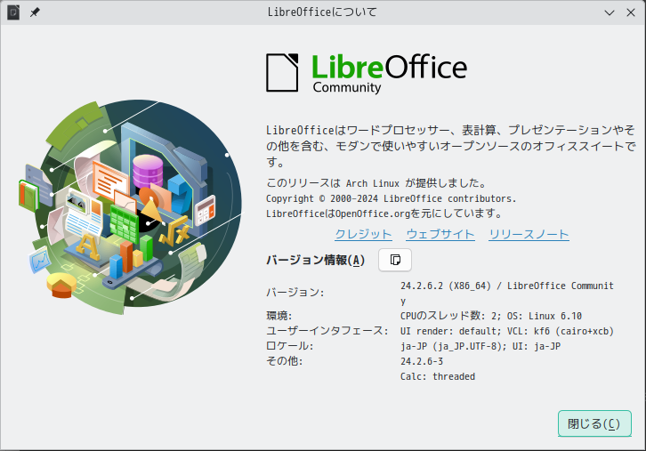 「Manjaro 24.2 KDE」-「LibreOffice」「バージョン情報」