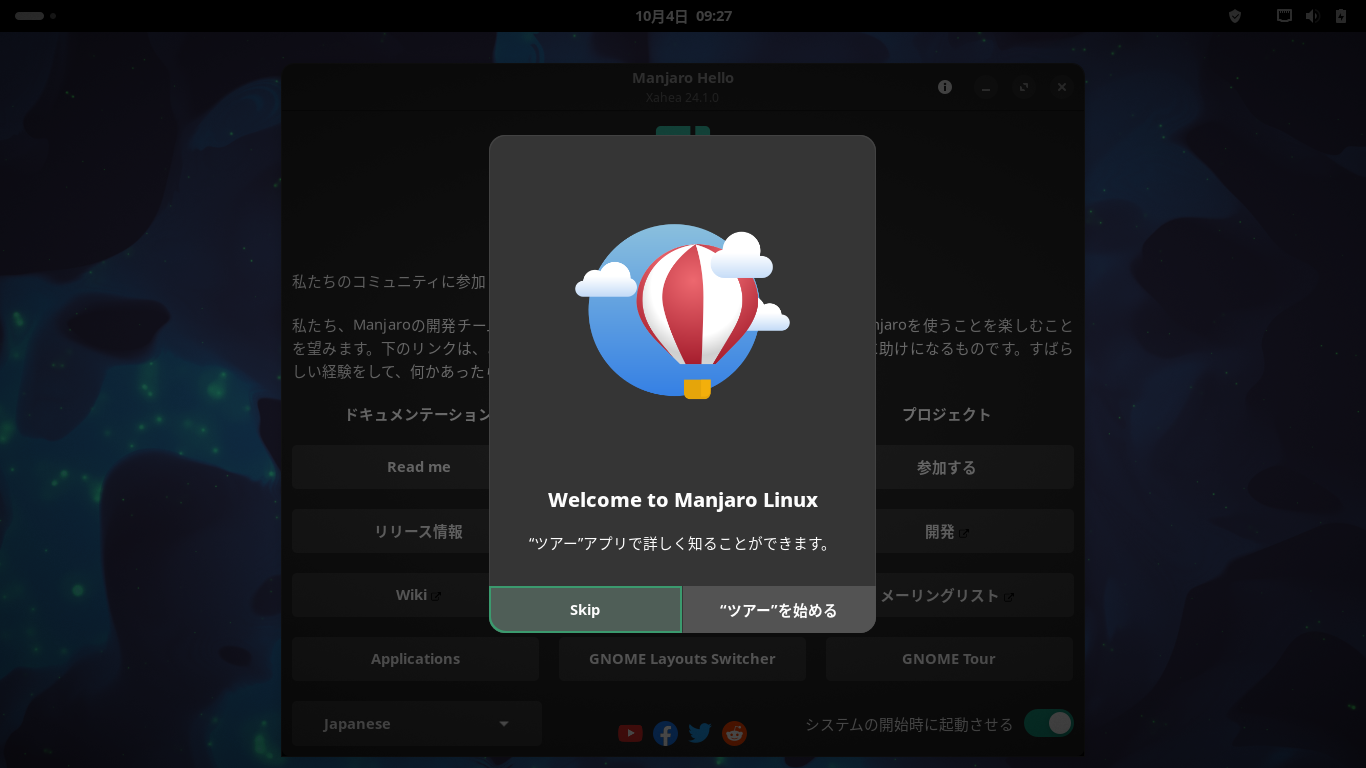 「Manjaro 24.2 GNOME」-「ツアーを始める」