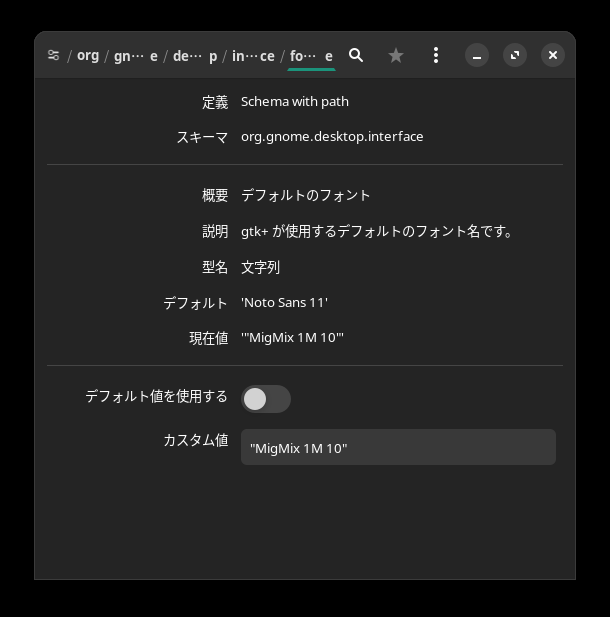 「Arc Menu」で「Windows」スタイルを使用します。  フォントは、下記を設定しました。