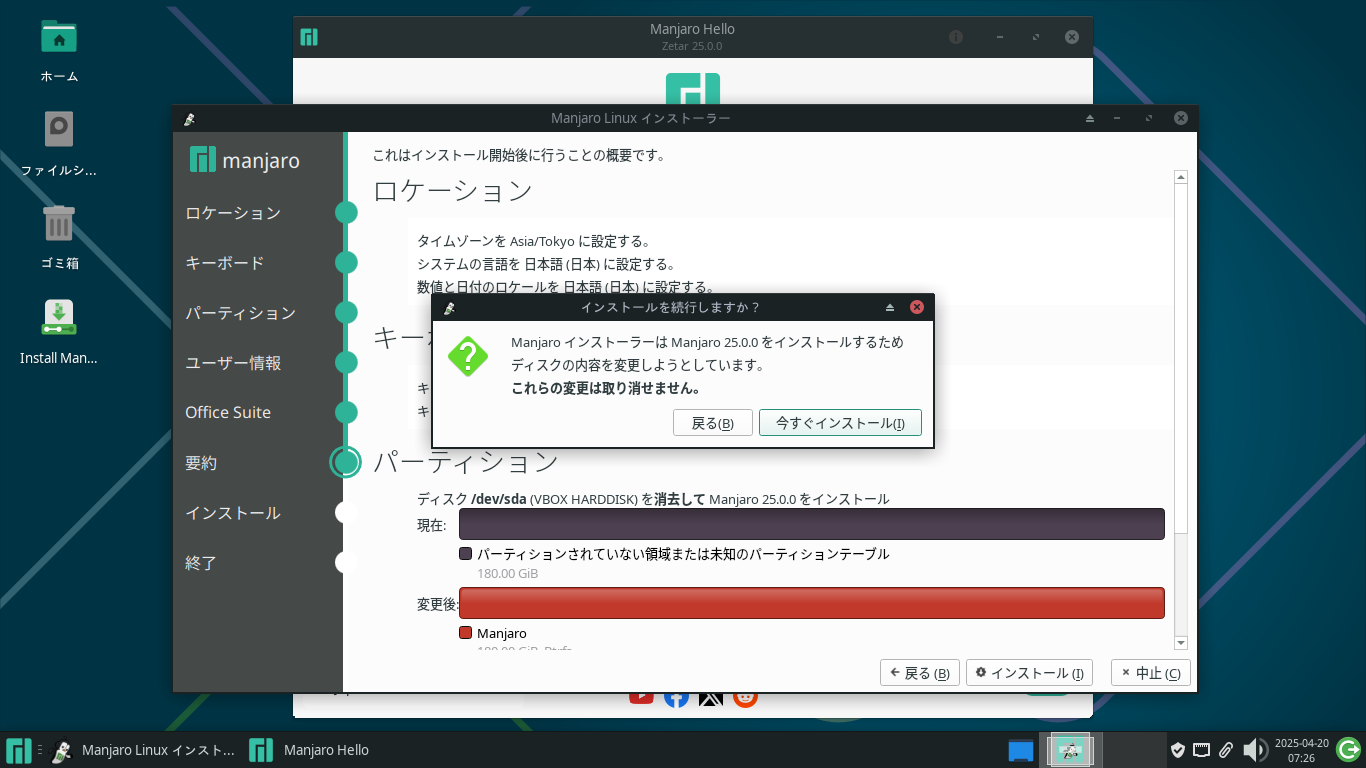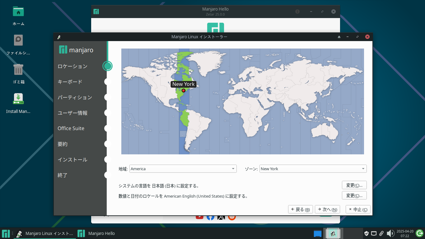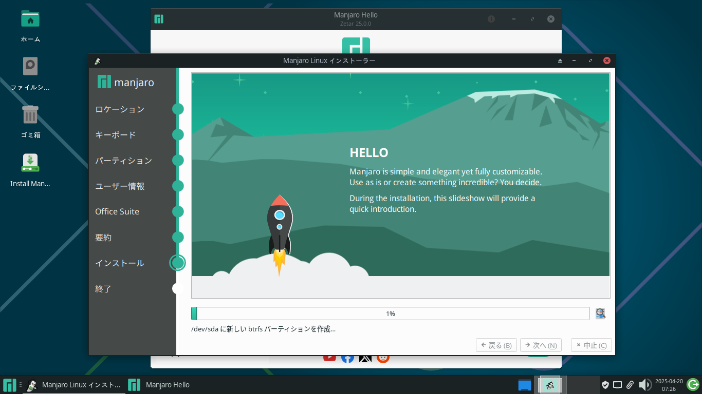 インストールに関しては、デスクトップが異なっても、画像が少し違うだけで、手順は同じですので、ここにまとめて記述します。