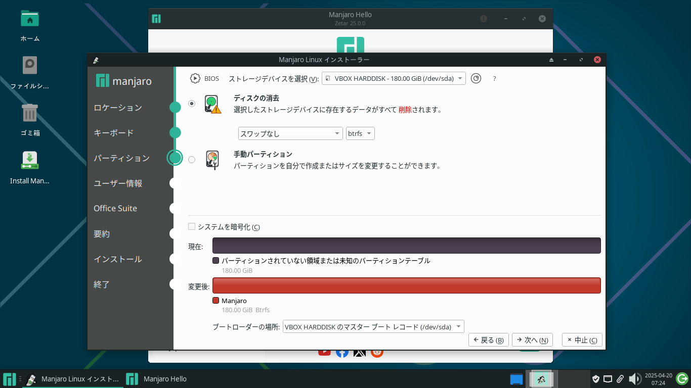 ここでは、「XFCE」のインストール時の画面を掲載しています。