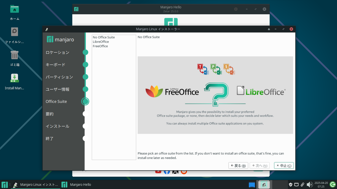 今回、「full edition」のインストーラを使用しているので、オフィススイートの選択肢があります。