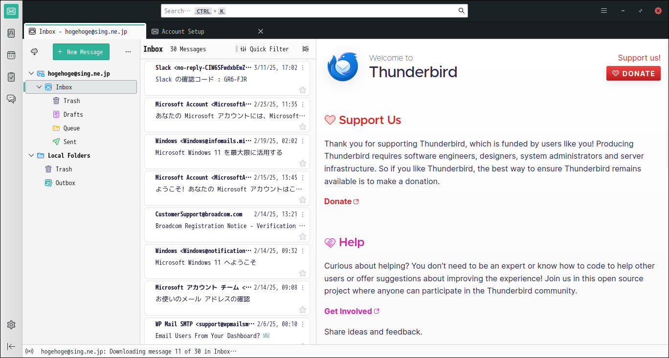 起動後に、受信トレイを開いた状態です。