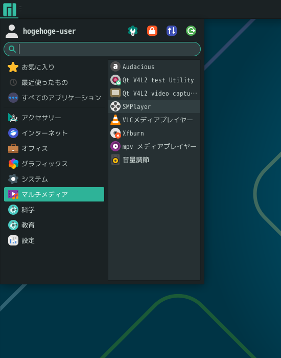 1. 概要 マルチメディアプレイヤーとして、「SMPlayer」を使用します。 2. インストール 「Pamac」で、「smplayer」を検索して、インストールします。 3. 起動 「スタート」→「マルチメディア」→「SMPlayer」