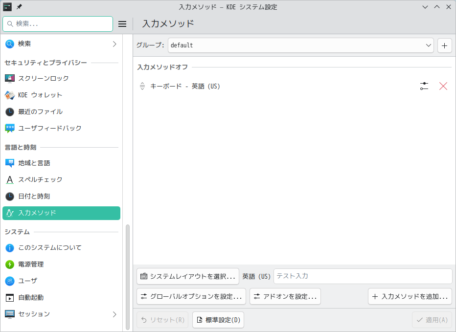 他のデスクトップでは、設定は何もないのですが、「KDE」では、キーボードレイアウトを変更する必要があります。