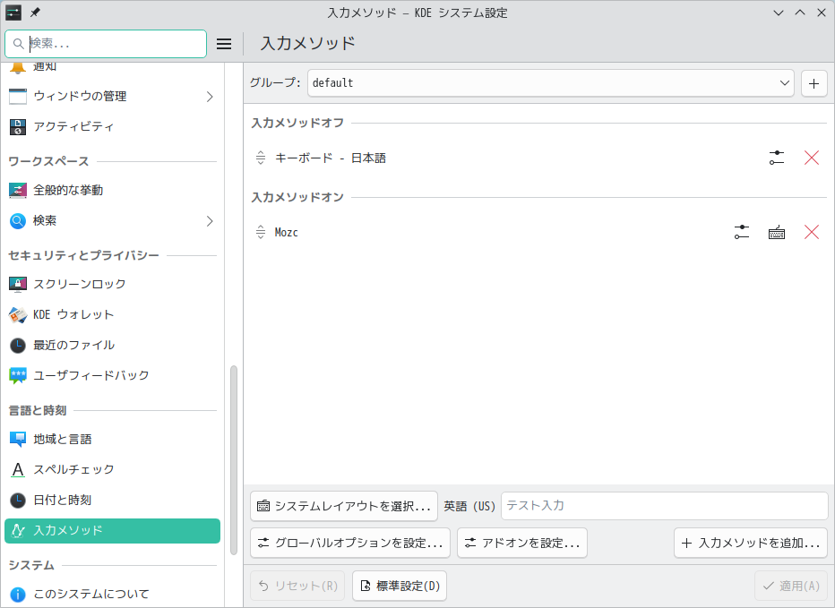 日本語入力として「fcitx5-mozc」を使用します。