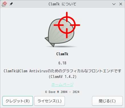 1. 概要 アンチウイルスソフトとして、「ClamTk」を使用します。 2. インストール 「Pamac」で、「clamtk」を検索して、インストールします。 3. 起動 「スタート」→「ユーティリティ」→「ClamTk」