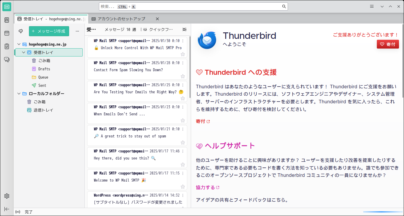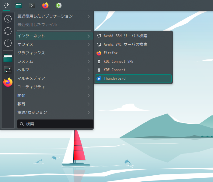 1. 概要 メールクライアントとして、「Thunderbird」を使用します。 普段、オペレーティングシステムインストール時点で、インストールされているのですが、今回は、インストールされていませんでした。 メールアカウント設定やその他の操作に関しては、「メール クライアント ソフト - Thunderbird」をご参照ください。 2. 起動 「Pamac」で、「thunderbird-i18n-ja」を検索して、インストールします。 2. 起動 「スタート」→「インターネット」→「Thunderbird」