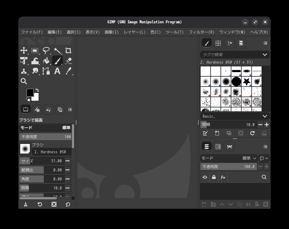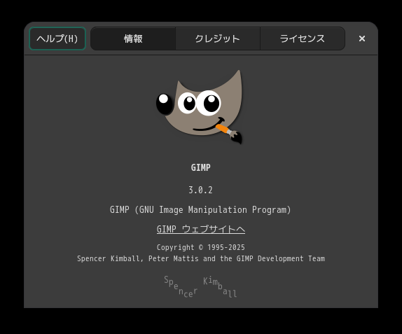 起動直後の状態です。 2025年4月28日の時点で、下記のバージョンでした。 「EndeavourOS」に続いて、同じ「Arch」組の「Manjaro」も「GIMP2」から「GIMP3」へ移行したようです。 操作については、「画像編集ソフト GIMP2」に掲載しています。 上記は簡単なものですので、詳細なものがほしい方は、各所に初歩の手引きから応用編までありますので、そちらを参考にしてください。 |
