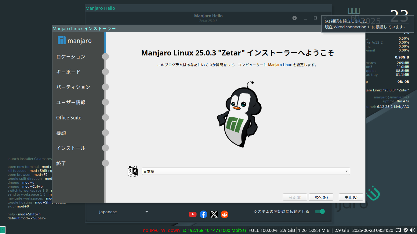 Manjaro - 25.0 - i3wm - インストール