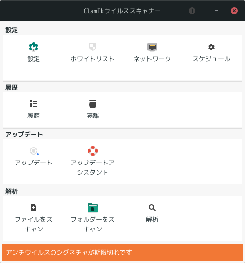 操作方法については、「デスクトップ環境構築 - 共通事項 - ClamTk」をご参照ください。