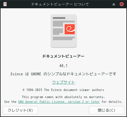 1. 概要 ドキュメントビューアとして、「Evince」を使用します。 「Evince」は、デフォルトでインストールされています。 2. 起動 「スタート」→「オフィス」→「ドキュメントビューア」