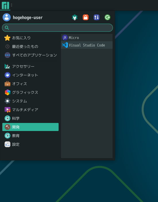 「スタート」→「開発」→「Visual Studio CodeS」