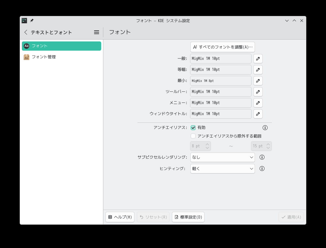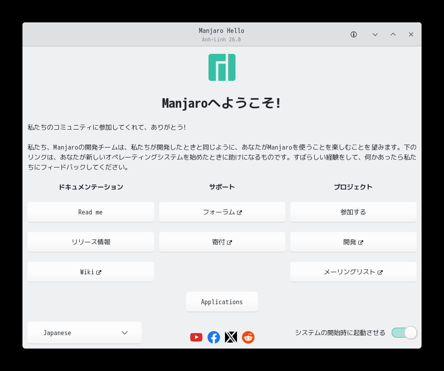 「Migmix 1M」のインストールに関しては、「Manjaro - 26.0 - 概要・共通事項」をご参照ください。