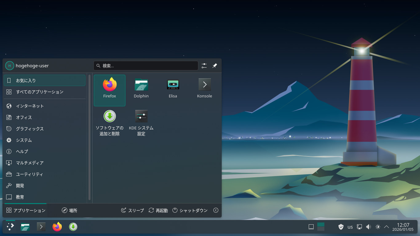 「KDE」の共通的な操作やカスタマイズ方法については、「KDE - 共通事項」をご参照ください。