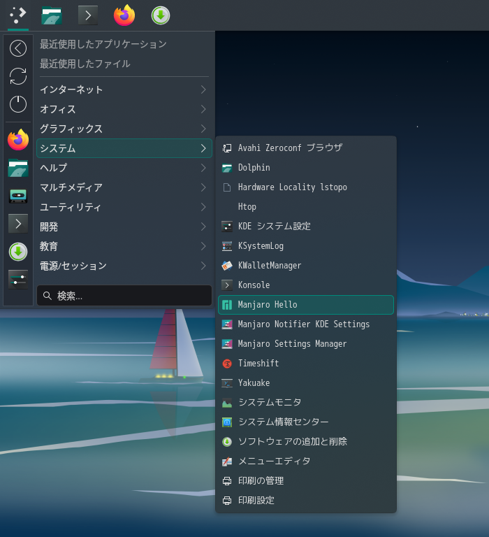 「スタート」→「システム」→「Manjaro hello」