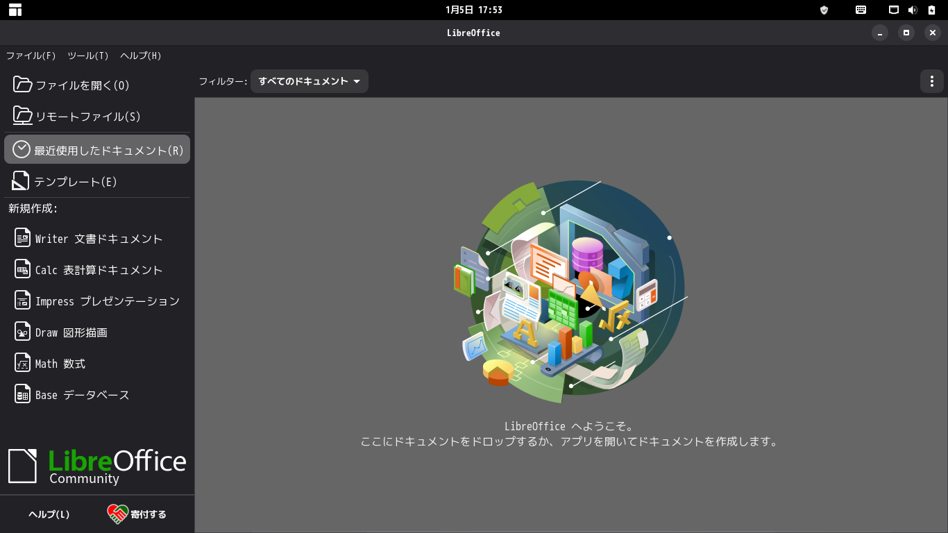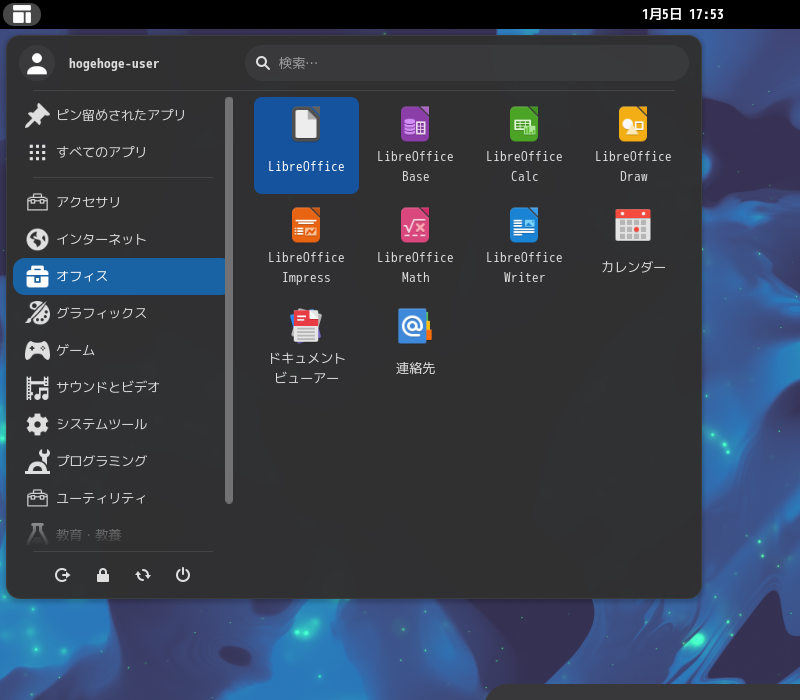1. 概要 オフィススイートとして、「LibreOffice」を使用します。 2. インストール 「Pamac」で、「libreoffice-ja」を検索して、「libreoffice-still-ja」をインストールします。 3. 起動 「スタート」→「オフィス」→「LibreOffice」