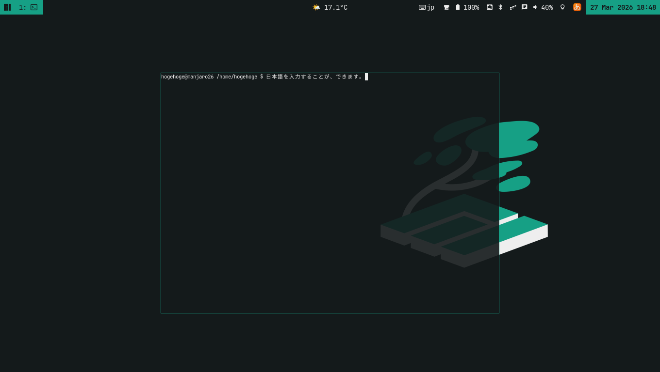ログインしなおして、日本語入力ができることを確認しました。