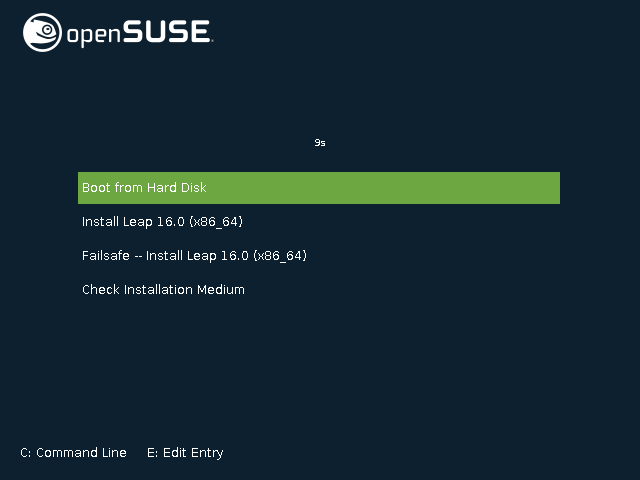 「Install Leap 16.0(x86_64)」を選択して Enter