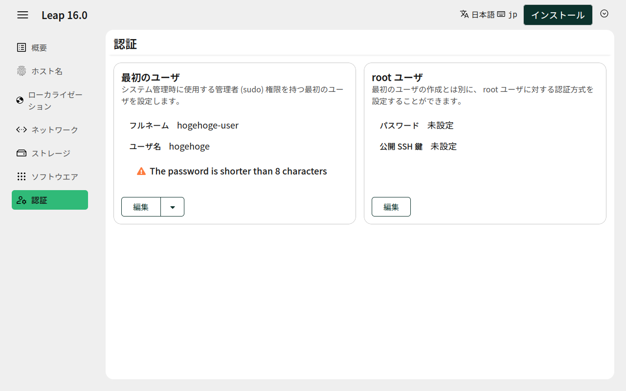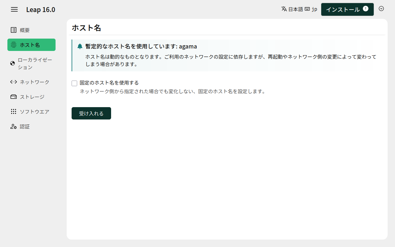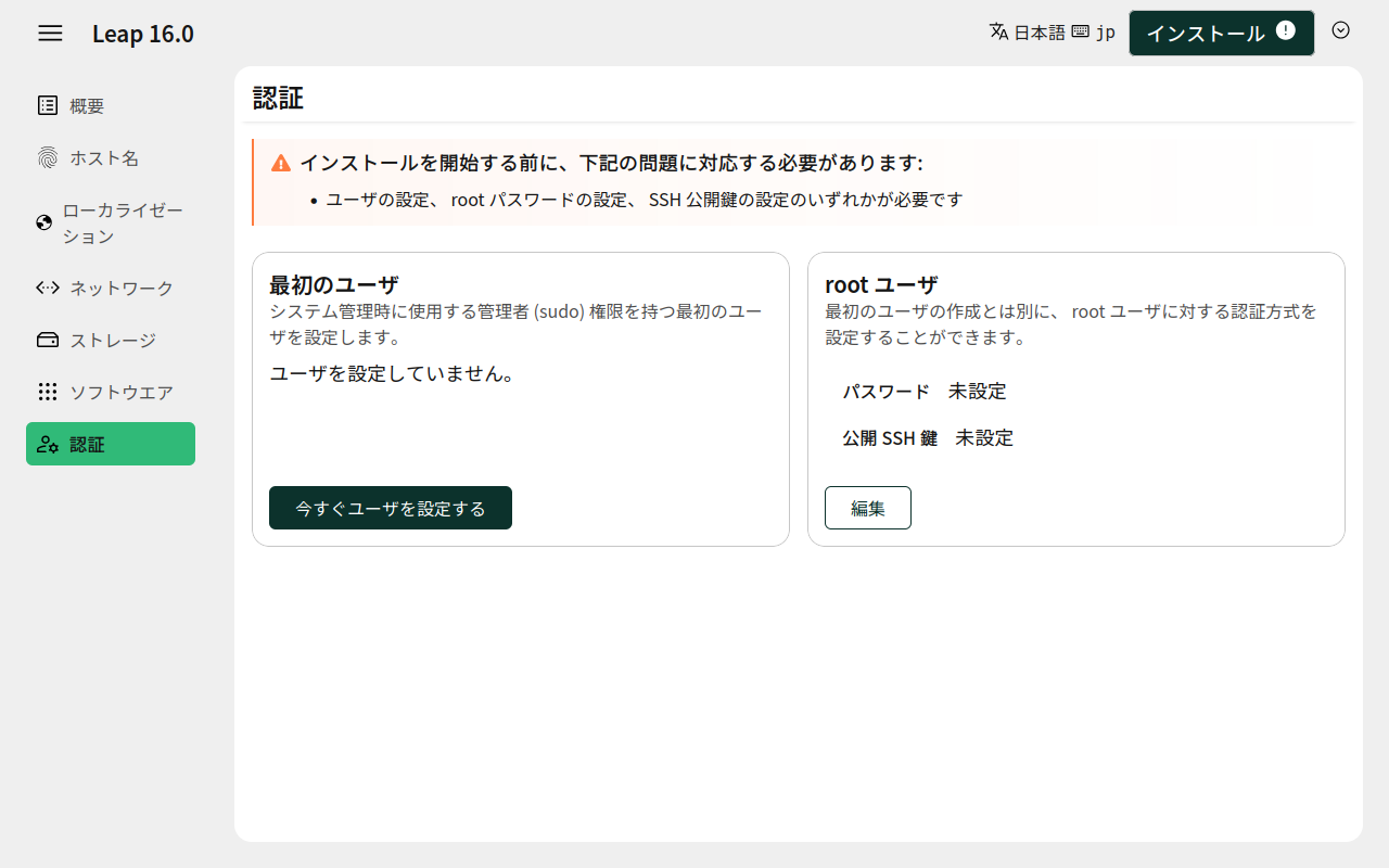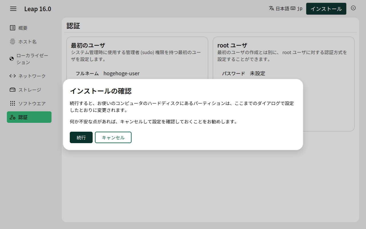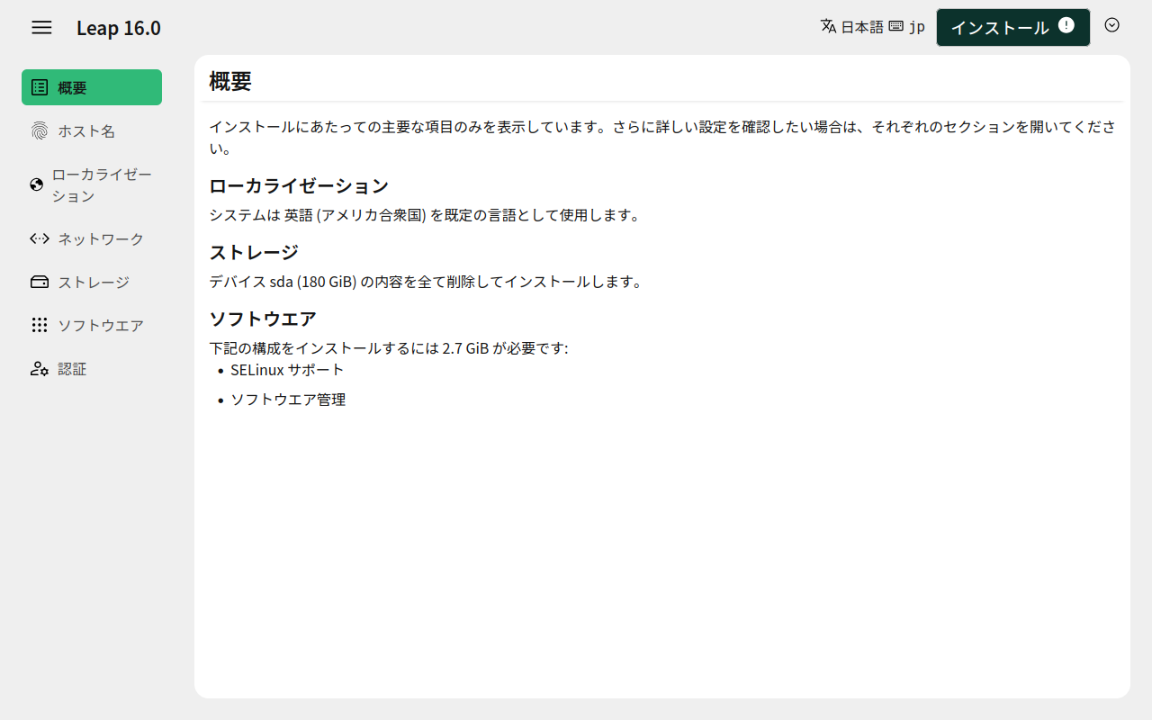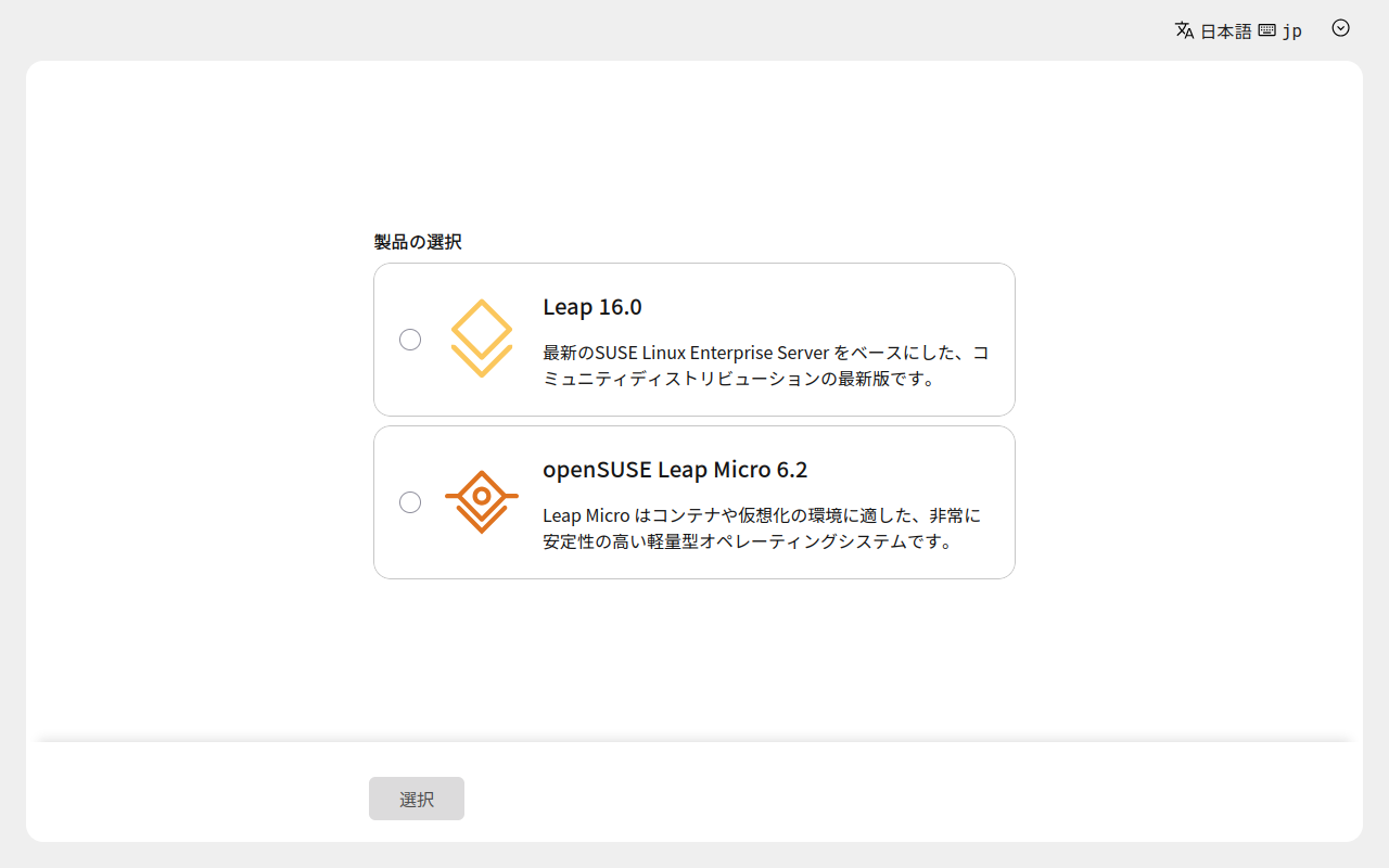 「Leap 16.0」へチェックをいれて。