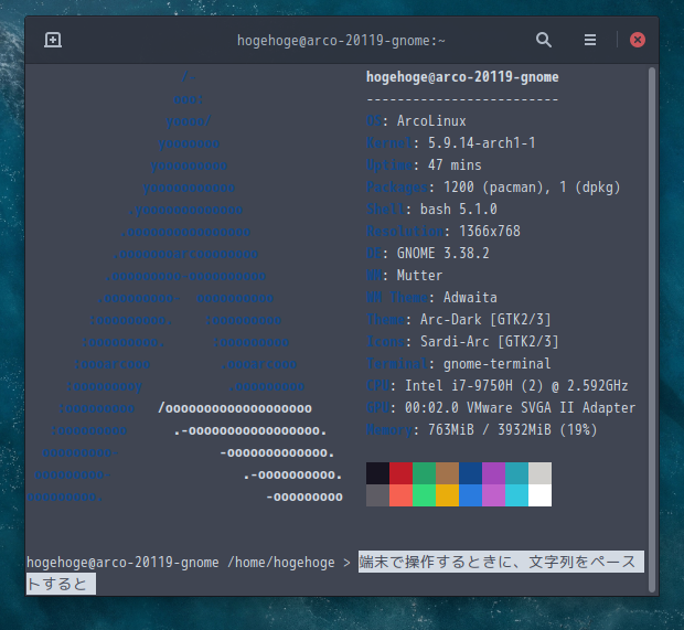 ArcoLinux - トラブルシュート - ペーストした文字が選択状態になる