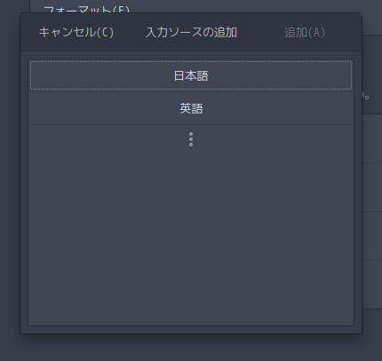 インストール時に、キーボードで「Japanese」を選択しているにもかかわらず、「日本語」はないし。