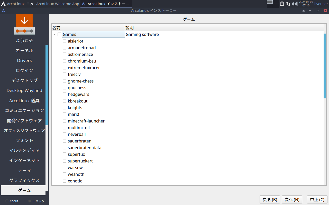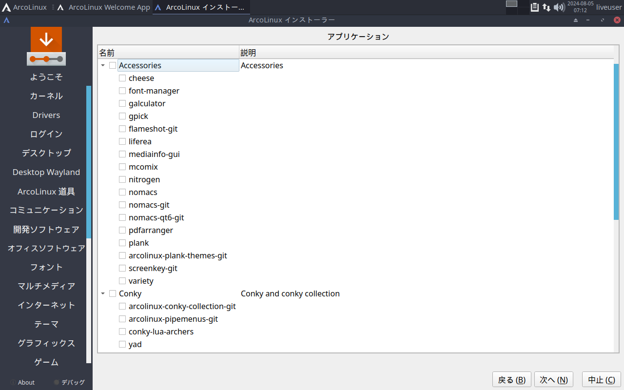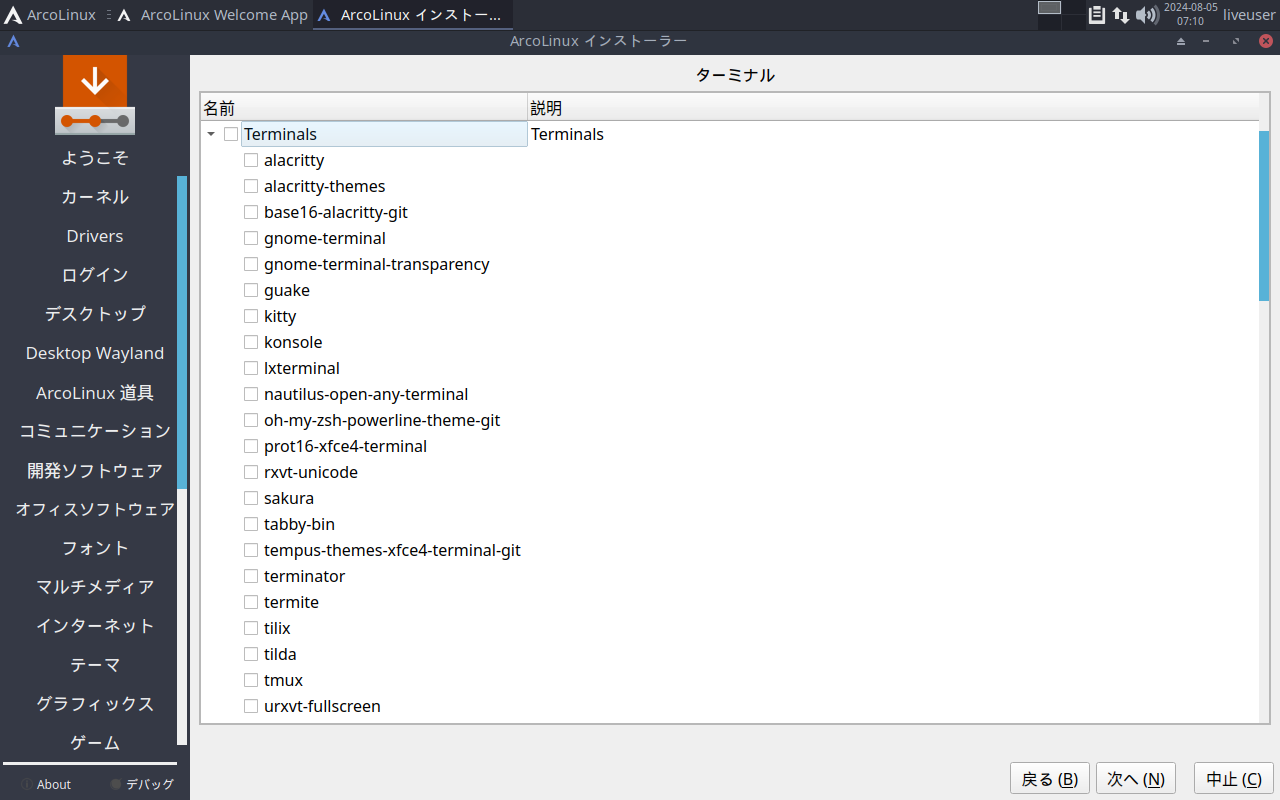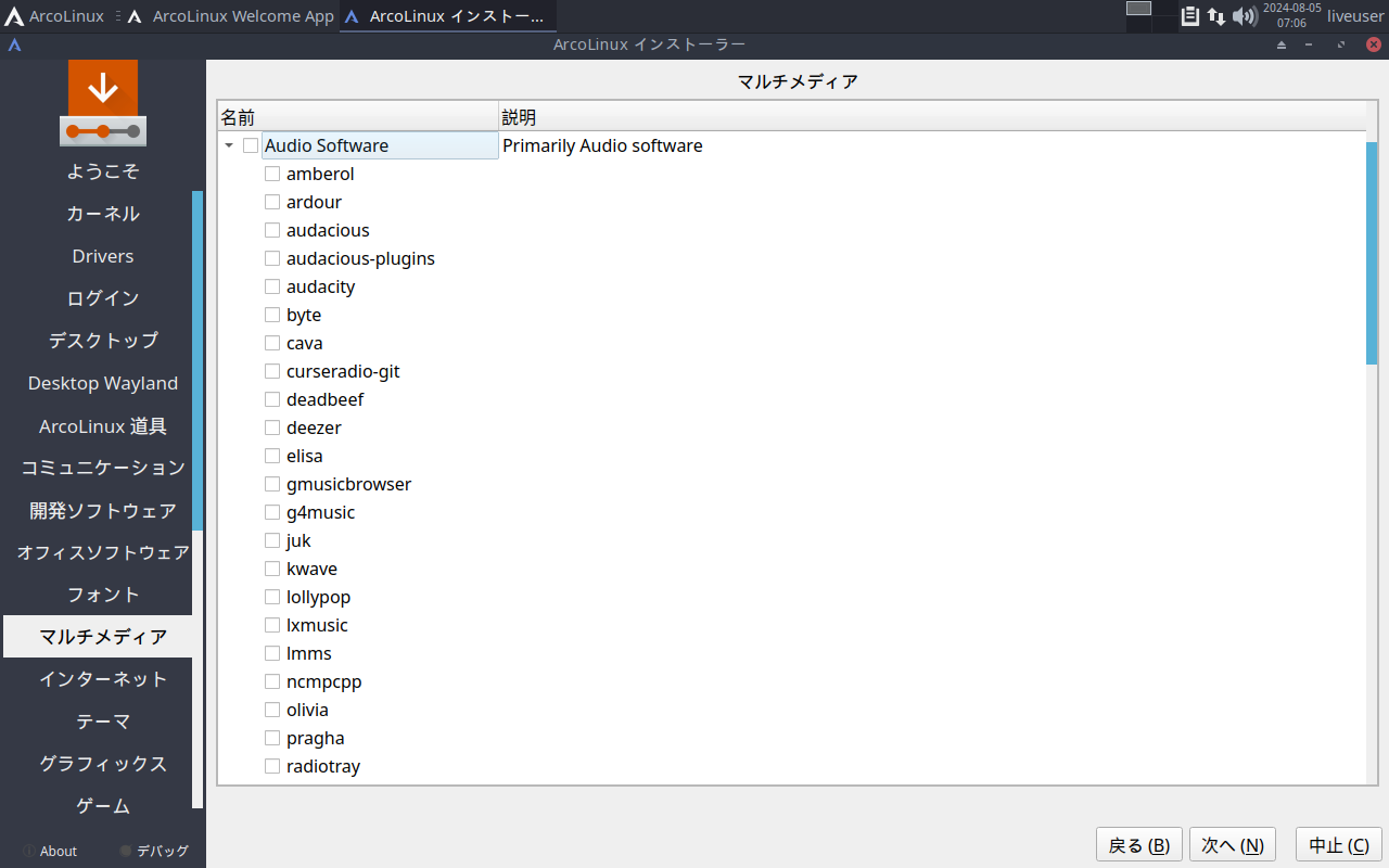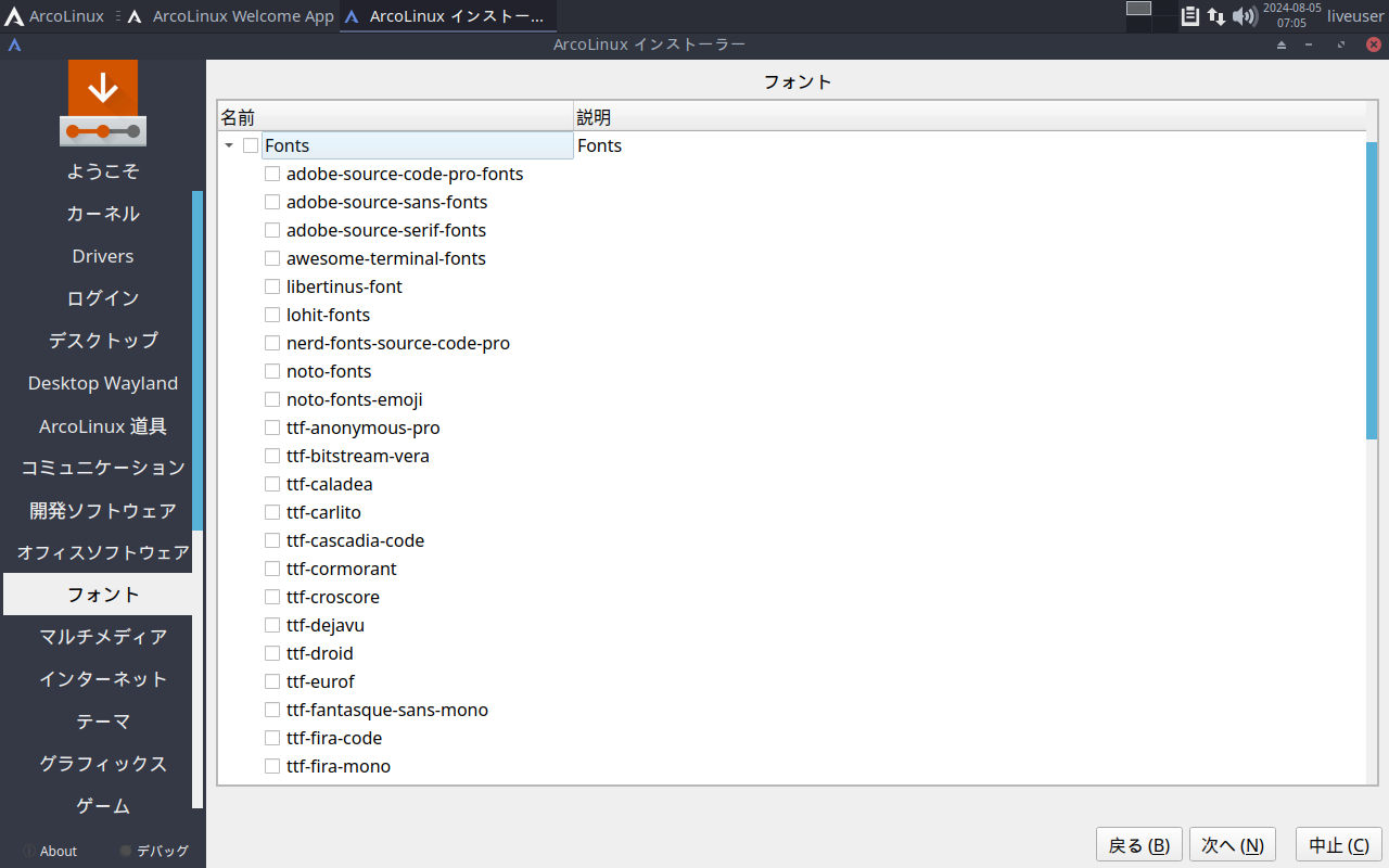 ここでは、「Browser」「Vivaldi」と「Mail Clients」「Thunderbird」をチェックして。
