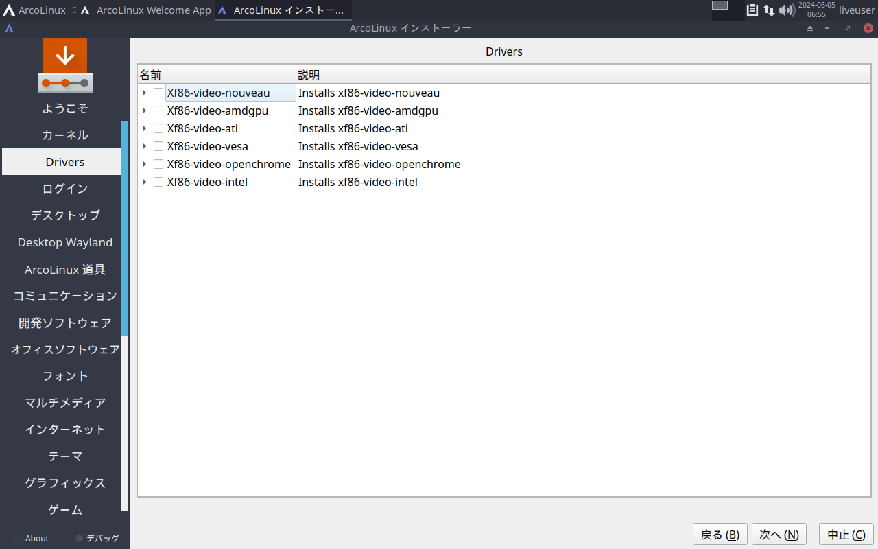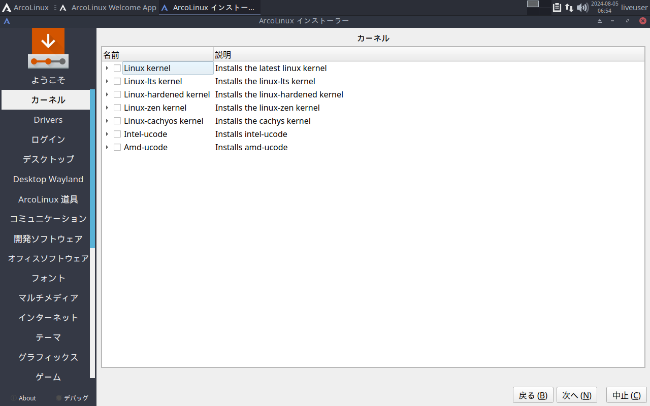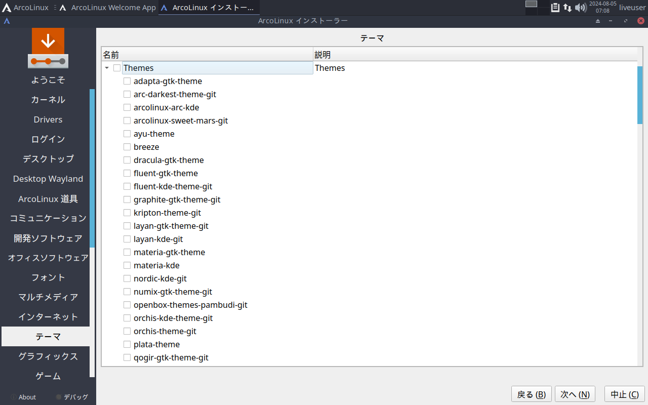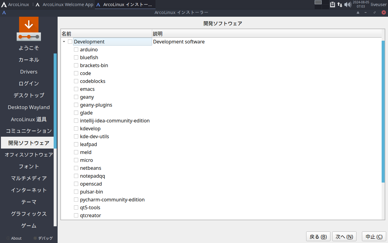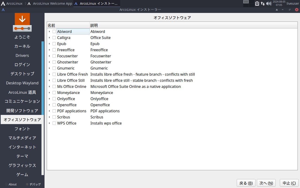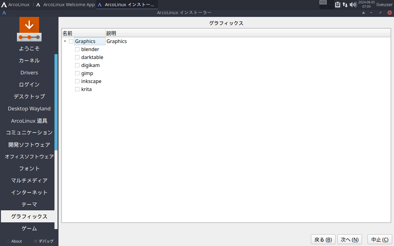 ここでは、「Browser」「Vivaldi」と「Mail Clients」「Thunderbird」をチェックして。