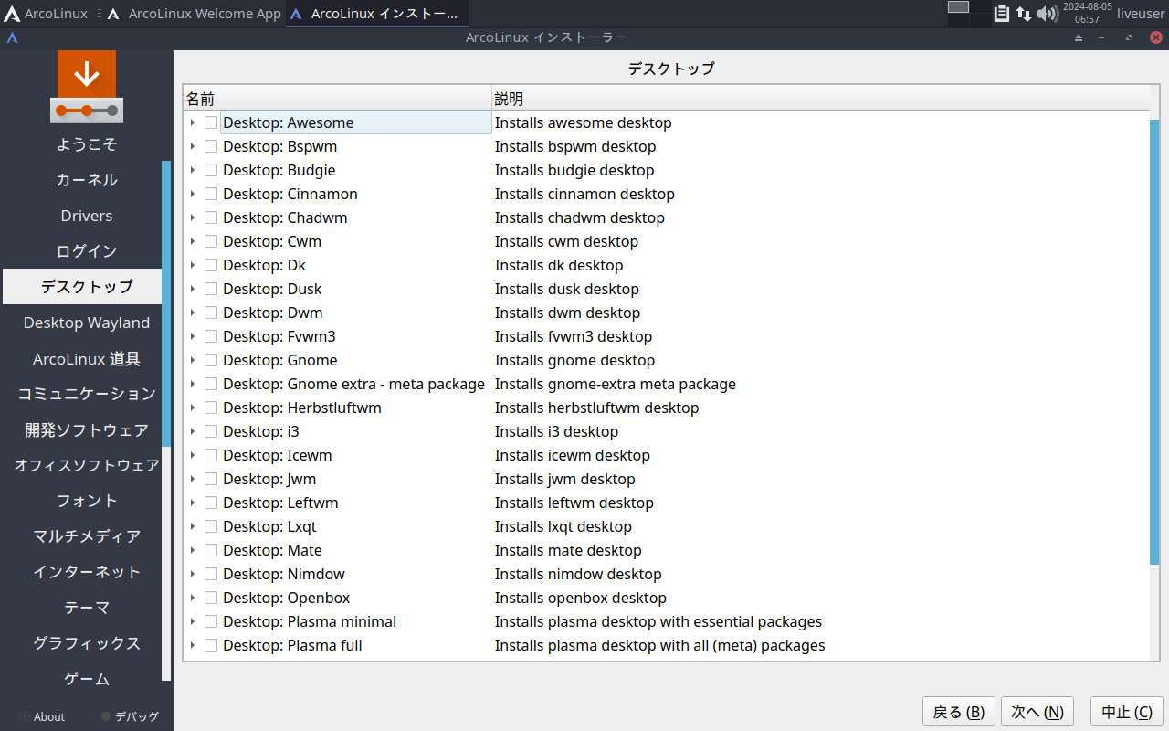 今は、インストーラが3種類なので、ここでインストールしたい、デスクトップをチェックします。