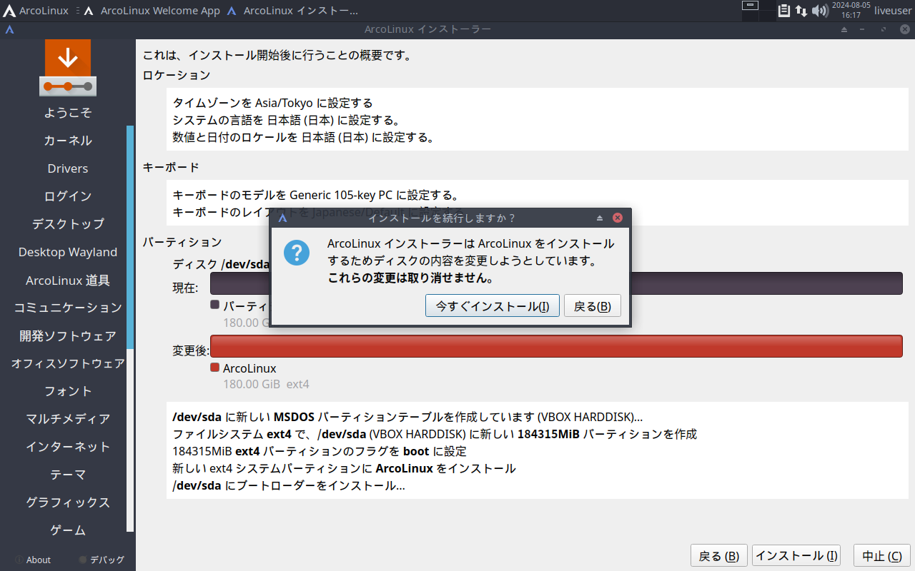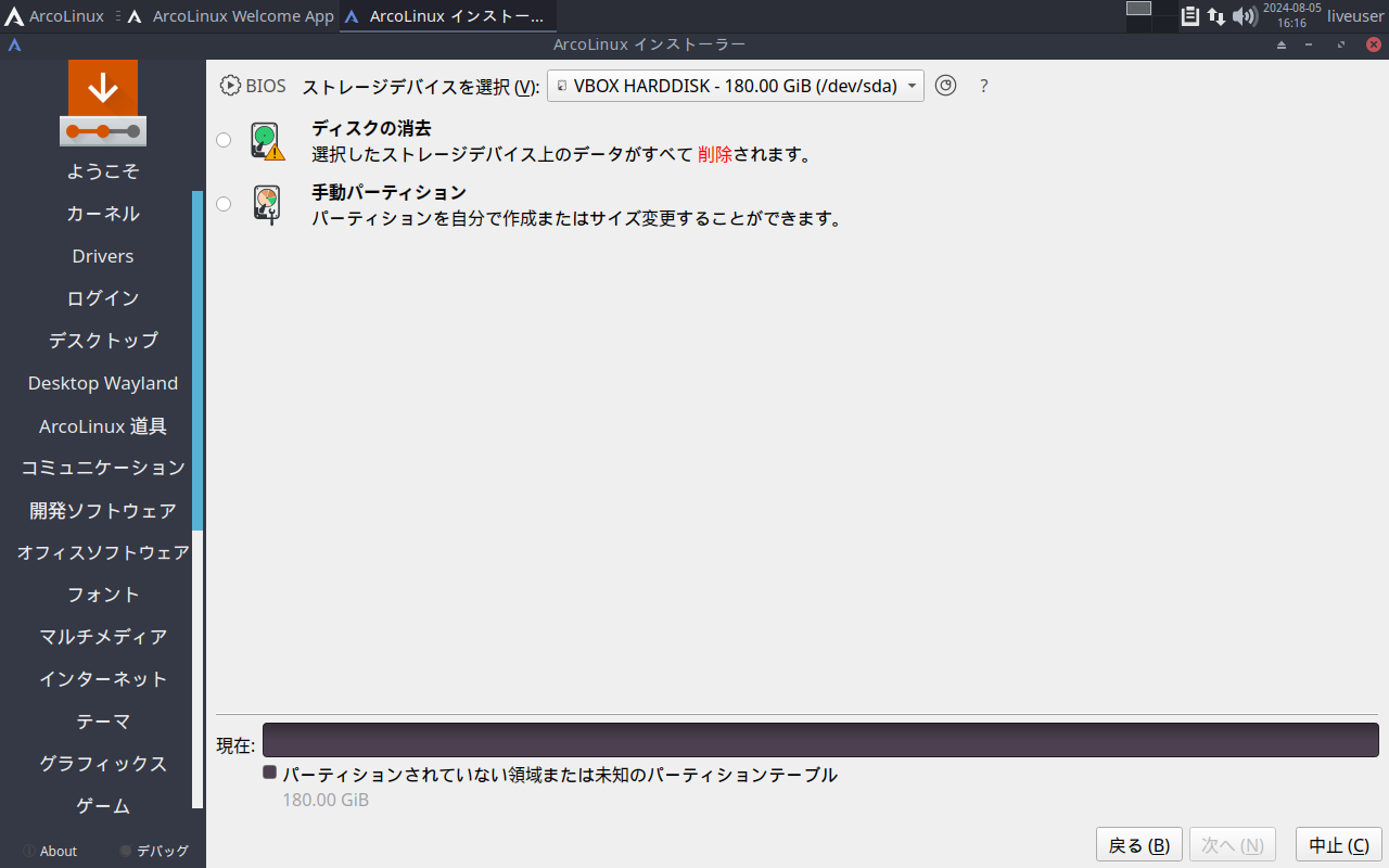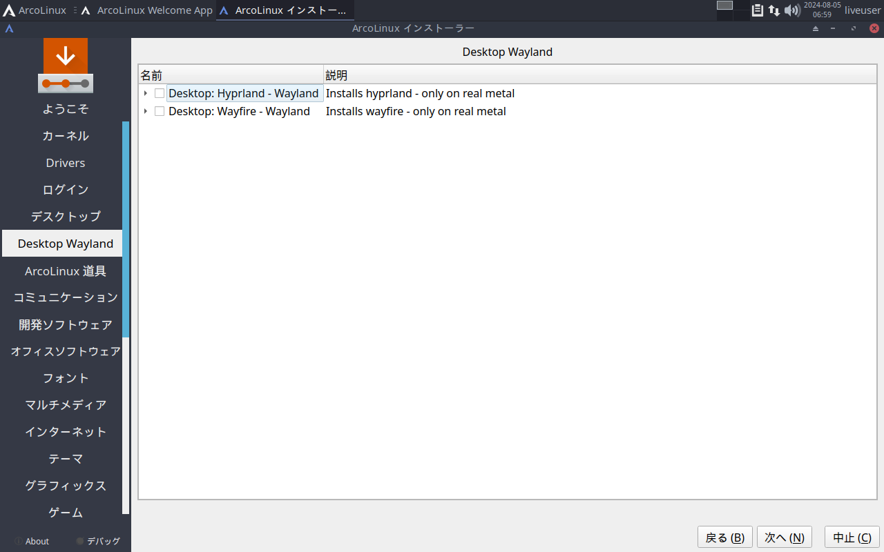 「VirtualBox」上なので、「Wayland」は、ほとんど使えません。