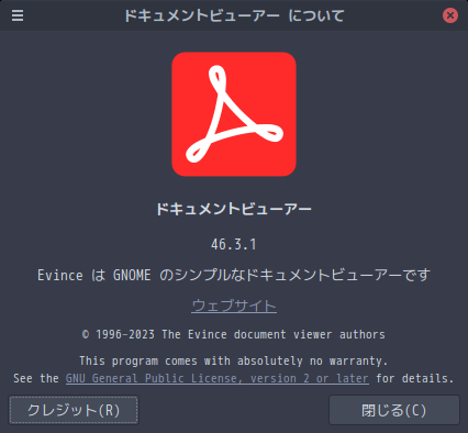 1. 概要 ドキュメントビューアとして、「Evince」をインストールして使用します。 「Evince」は、デフォルトでインストールされています。 2. 起動 「スタート」→「オフィス」→「Evince ドキュメントビューアー」