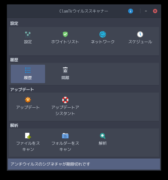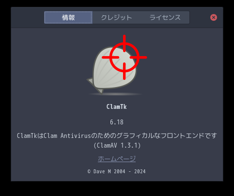 1. 概要 「ClamTk」は、「GUI」で操作するアンチウィルスソフトです。 2. インストール 「Pamac」で、「clamtk」を検索してインストールします。 3. 起動 「スタート」→「C」→「ClamTk」