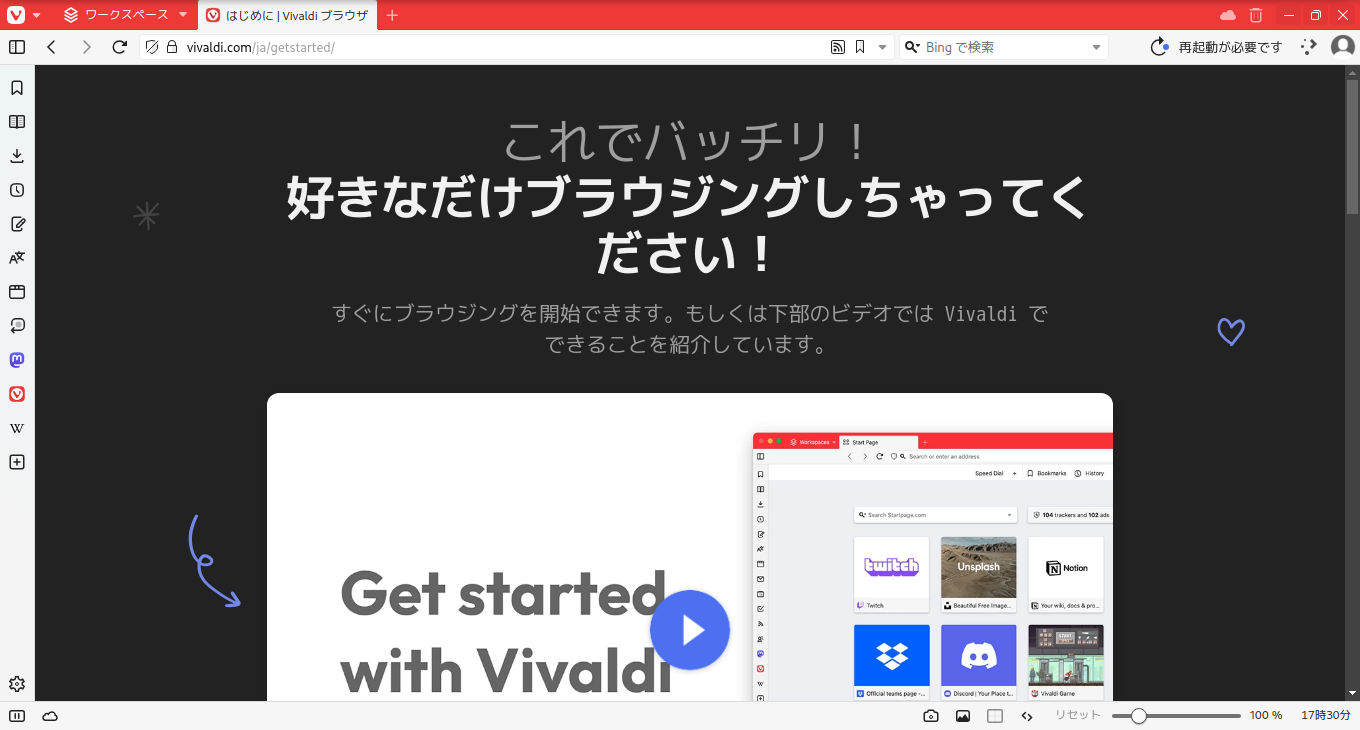 1. 概要 ブラウザとして、「Vivaldi」を使用します。 システムインストール時に選択していれば、デフォルトでインストールされています。 2. 起動 「スタート」→「インターネット」→「Vivaldi」