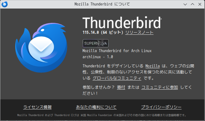 ArcoLinux - 24.07.01 - KDE - メールクライアント Thunderbird