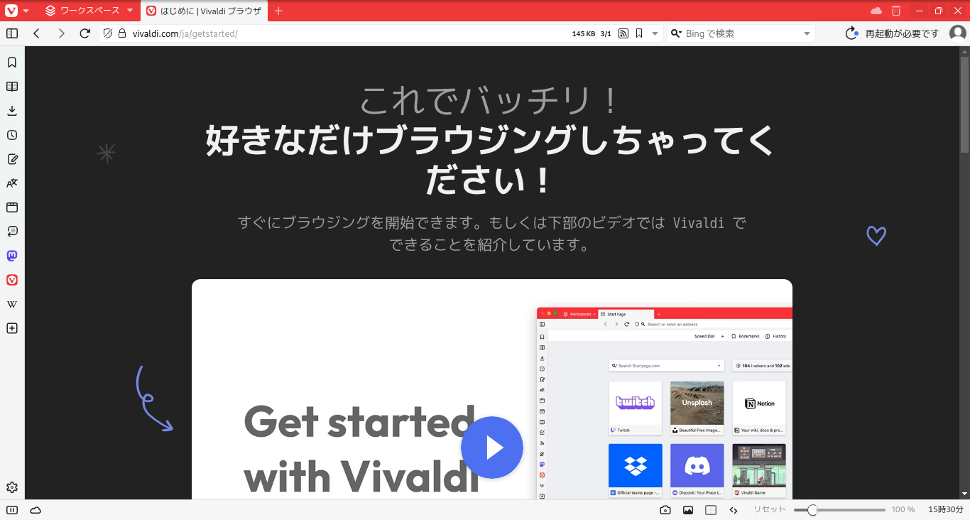1. 概要 ブラウザとして、「Vivaldi」を使用します。 システムインストール時に選択していれば、デフォルトでインストールされています。 2. 起動 「スタート」→「インターネット」→「Vivaldi」