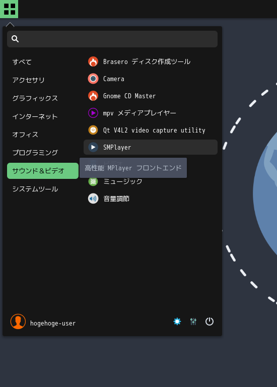 1. 概要 マルチメディアプレイヤーとして、「SMPlayer」をインストールして使用します。 システムインストール時に選択していれば、デフォルトでインストールされています。 2. 起動 「スタート」→「サウンドとビデオ」→「SMPlayer」