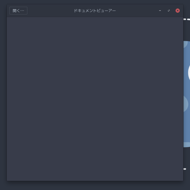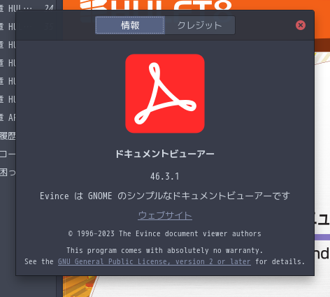 1. 概要 ドキュメントビューアとして、「Evince」を使用します。 「Evince」は、デフォルトでインストールされています。 2. 起動 「スタート」→「ユーティリティ」→「ドキュメントビューア」