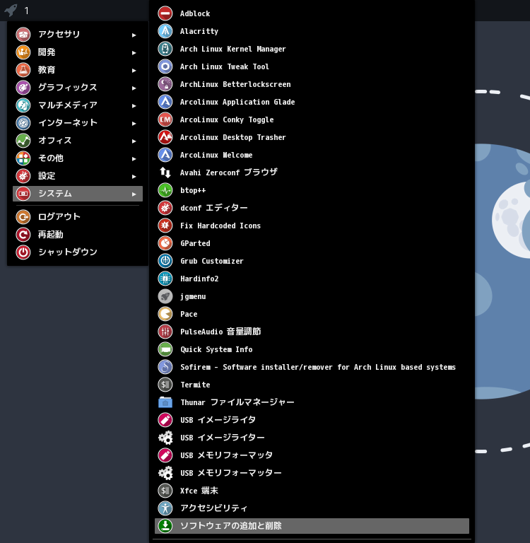1. 概要 パッケージ管理フロントエンドとして「Pamac」を使用します。 2. インストール 「root」ユーザ権限で。 yes | pacman -S pamac-aur 3. 起動 「スタート」→「システム」→「ソフトウェアの追加と削除」