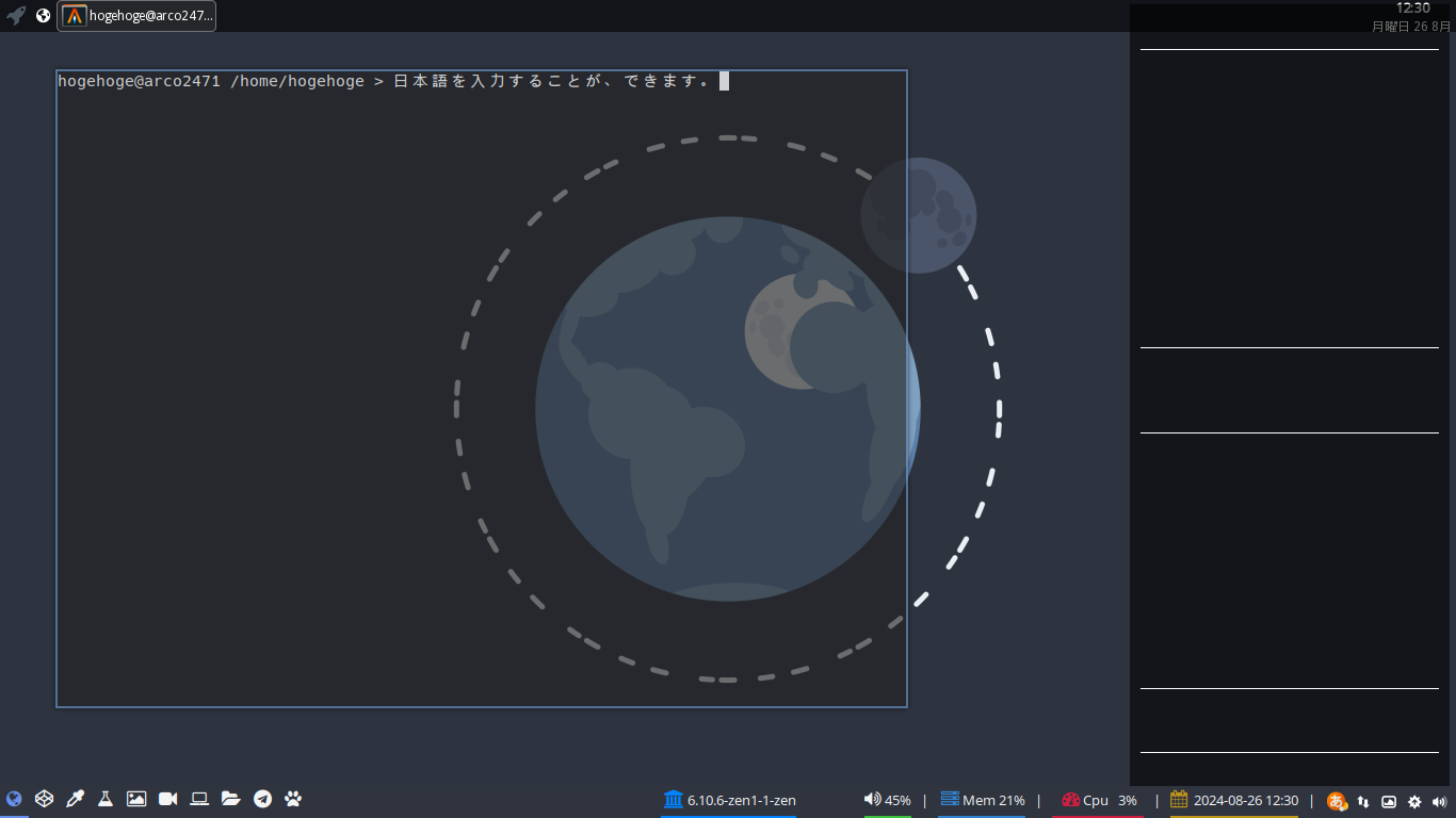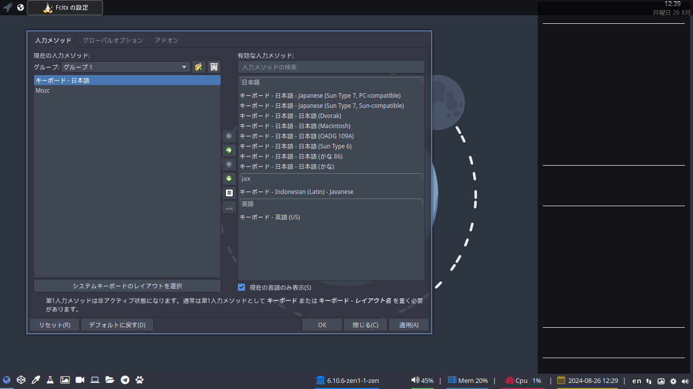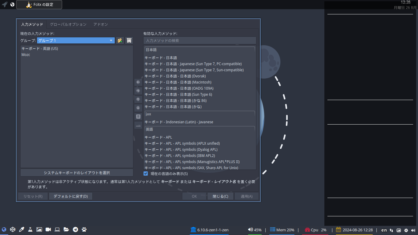 日本語入力として、「fcitx5-mozc」をインストールして使用します。