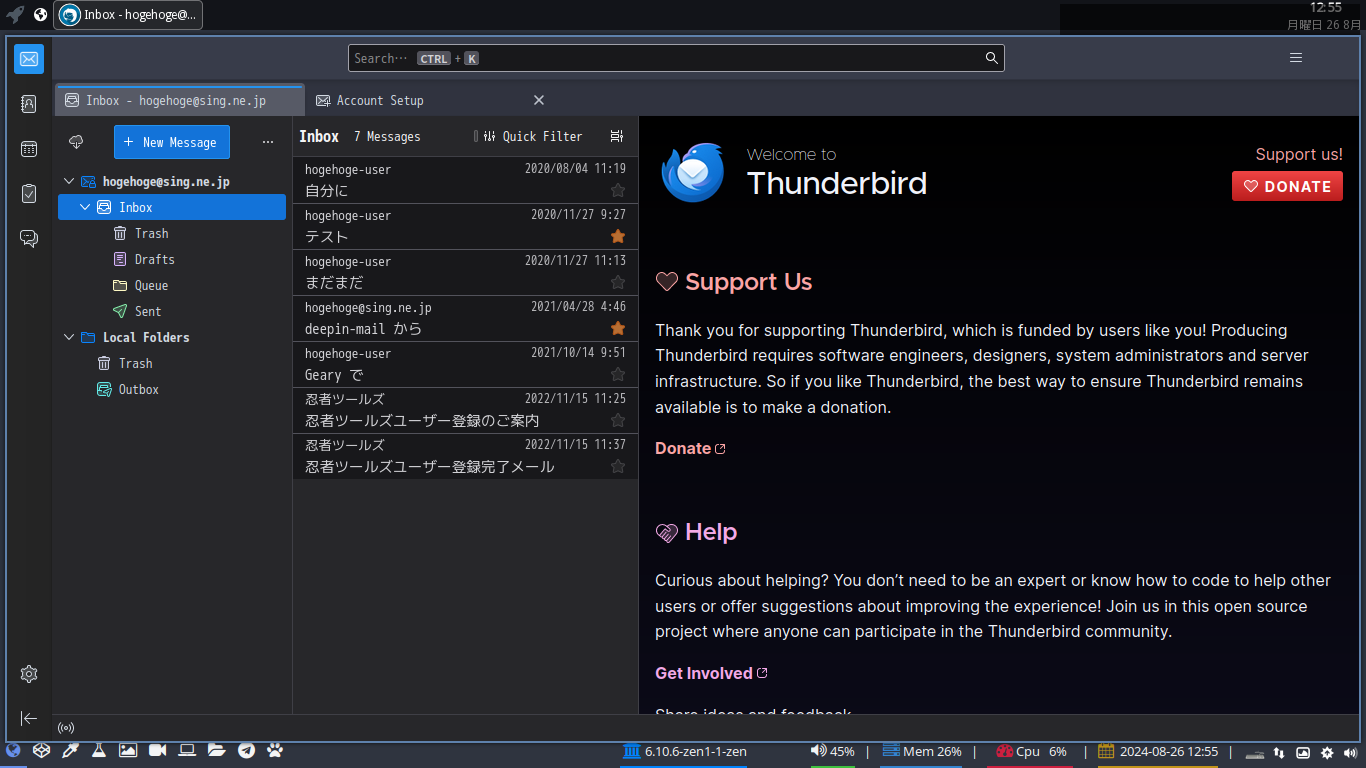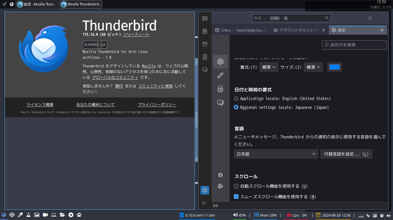ArcoLinux - 24.07.01 - xmonad - メールクライアント Thunderbird