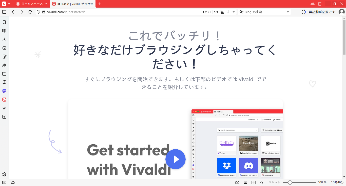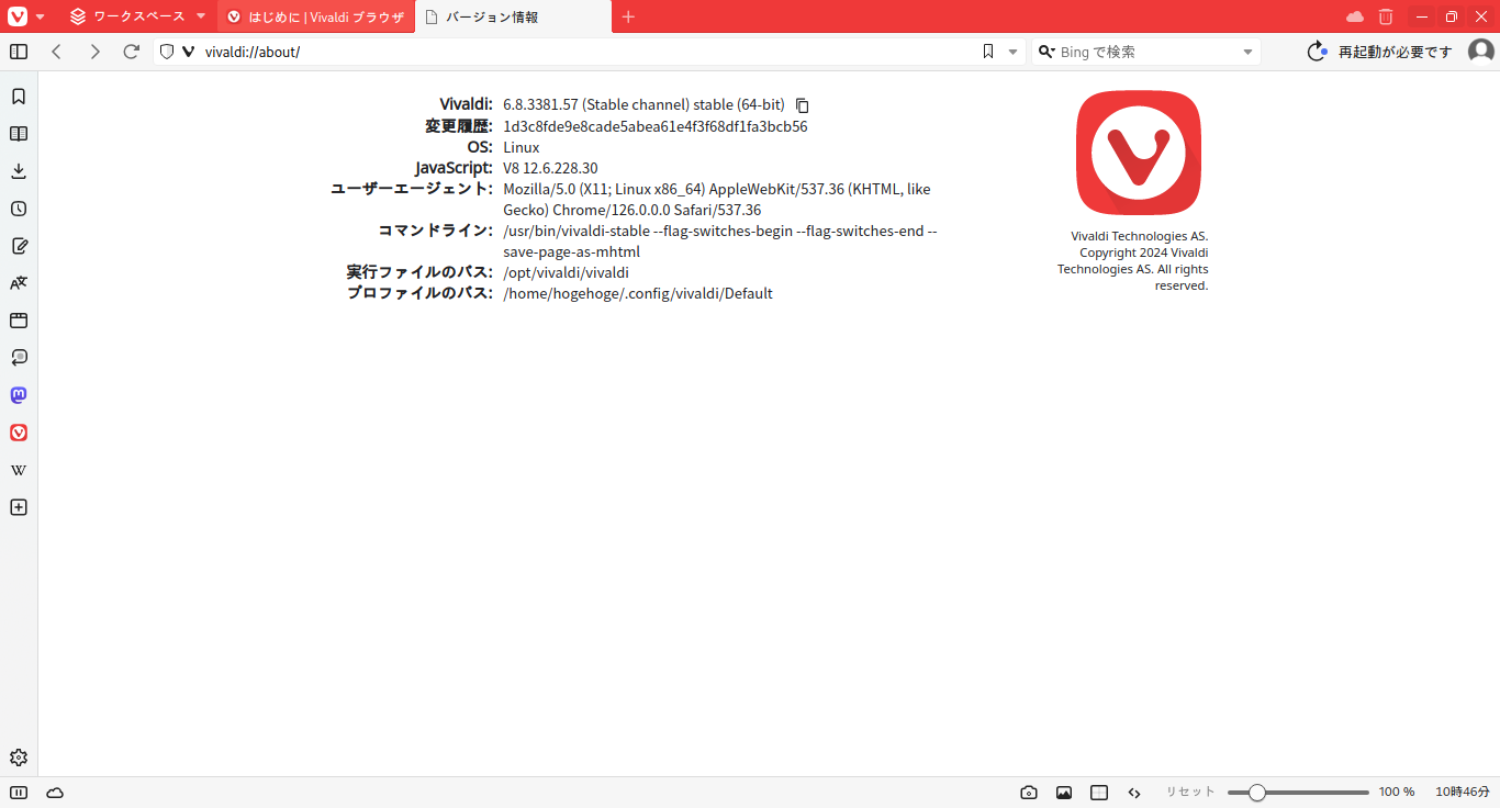 ブラウザとして、「Vivaldi」を使用します。  システムインストール時に選択していれば、デフォルトでインストールされています。