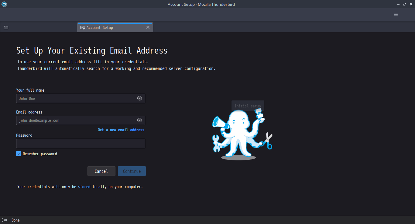 ArcoLinux - 24.07.01 - LXQt - メールクライアント Thunderbird