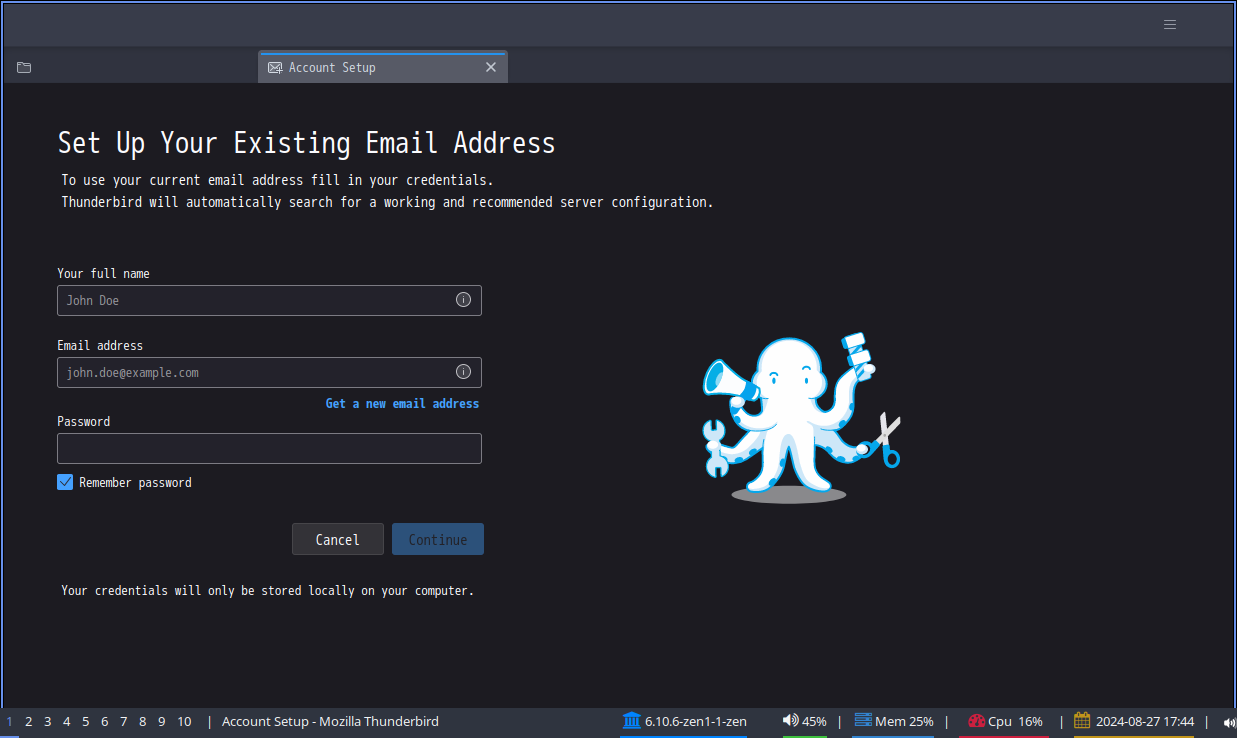 ArcoLinux - 24.07.01 - herbstluftwm - メールクライアント Thunderbird